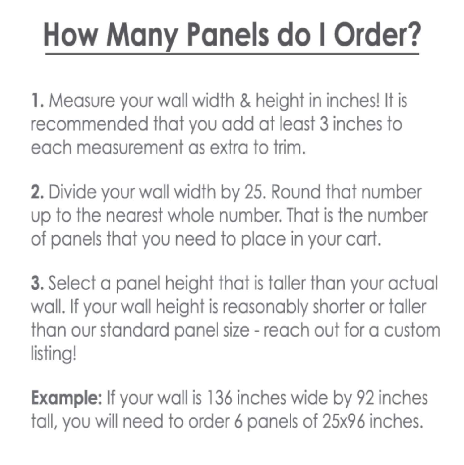 -Our wallpapers are printed as panels, not as traditional wallpaper rolls. Each panel will be numbered and should be installed in numerical order (excluding identical panel designs).