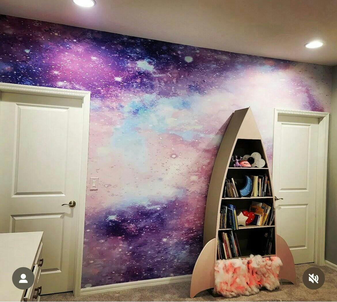 Beautiful purple galaxy wall mural. This is a wall mural which will be fit to your wall based on the quantity and size of panels ordered. See close up image of tiny color vector shapes which make up this beautiful wall mural. Ask about custom color and scale.