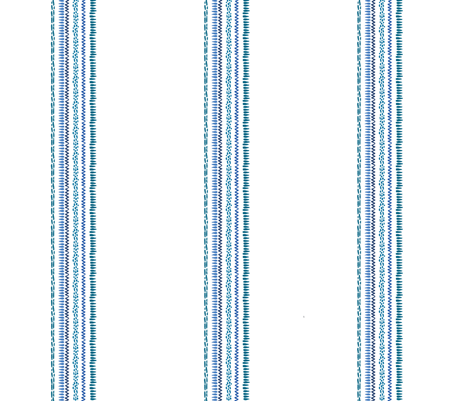 Whimsical hand drawn shapes make up this modern vertically grouped blues and teals stripes wallpaper pattern featuring a white background. Each stripe is a different hue of blue or teal. This pattern repeats every 25 inches wide. Ask about custom colors and scale.
